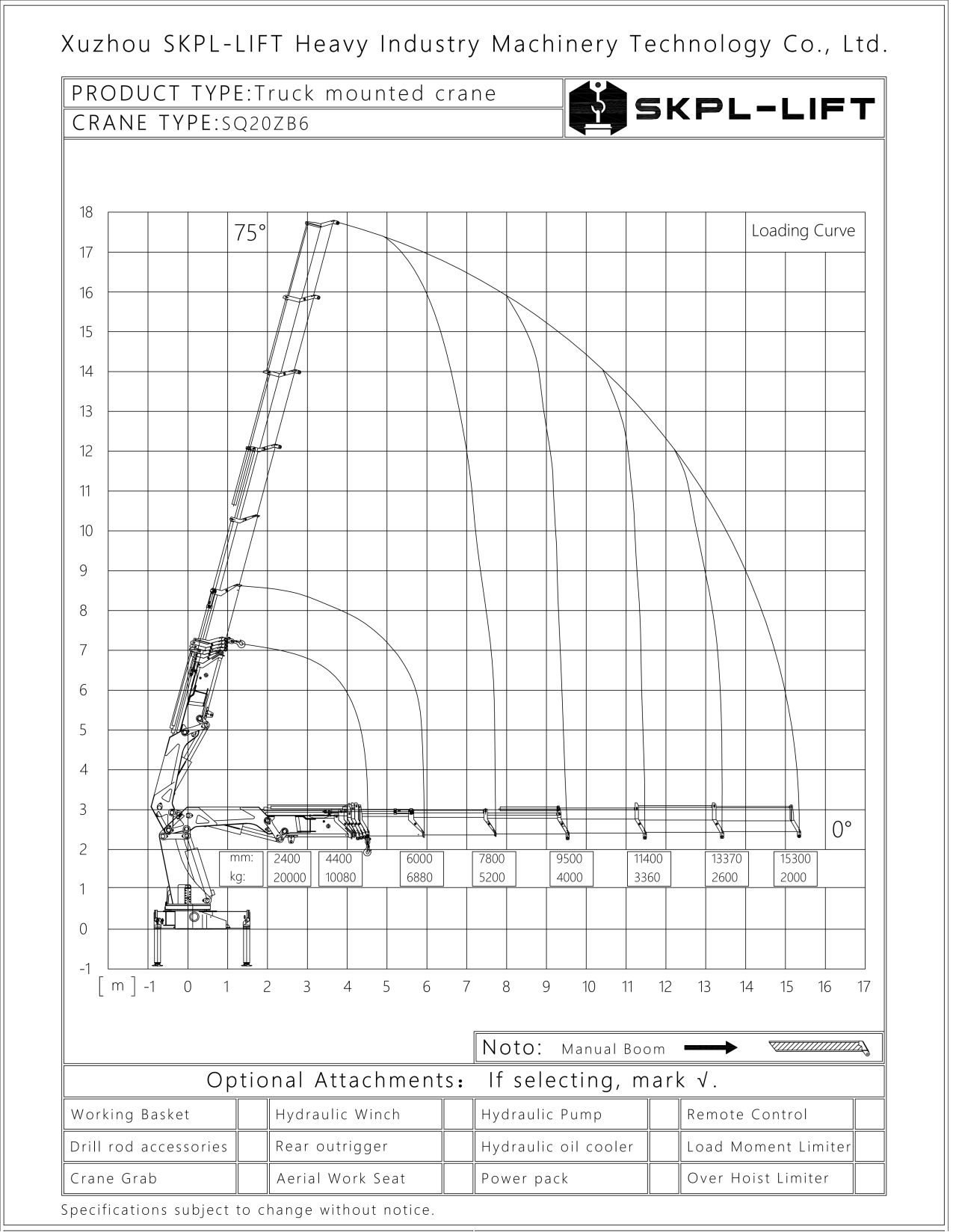 The crane has a rated lifting capacity of 20,000 kg, a maximum working radius of 15.3 m, and a maximum lifting height of 17.5 m, easily covering high-rise lifting, long-distance heavy transport, and other high-demand operations. It is ideal for industries such as large-scale chemical plants, energy infrastructure, and heavy manufacturing.