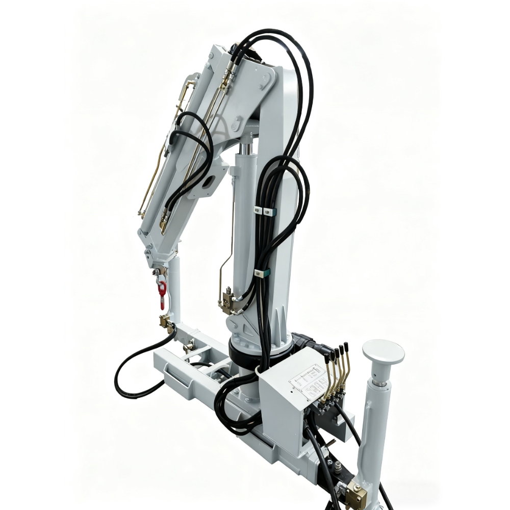 The precision linkage design maximizes lifting torque for loads up to 800 kg. The compact crane structure does not compromise strength, ensuring safe and efficient operations for lifting, positioning, or material handling in logistics, light construction, or agricultural applications.