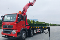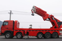 Red HOWO truck mounted crane 38T capacity with foldable arm for bridge construction projects