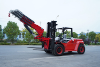 Red forklift crane attachment for material handling in construction and logistics operations